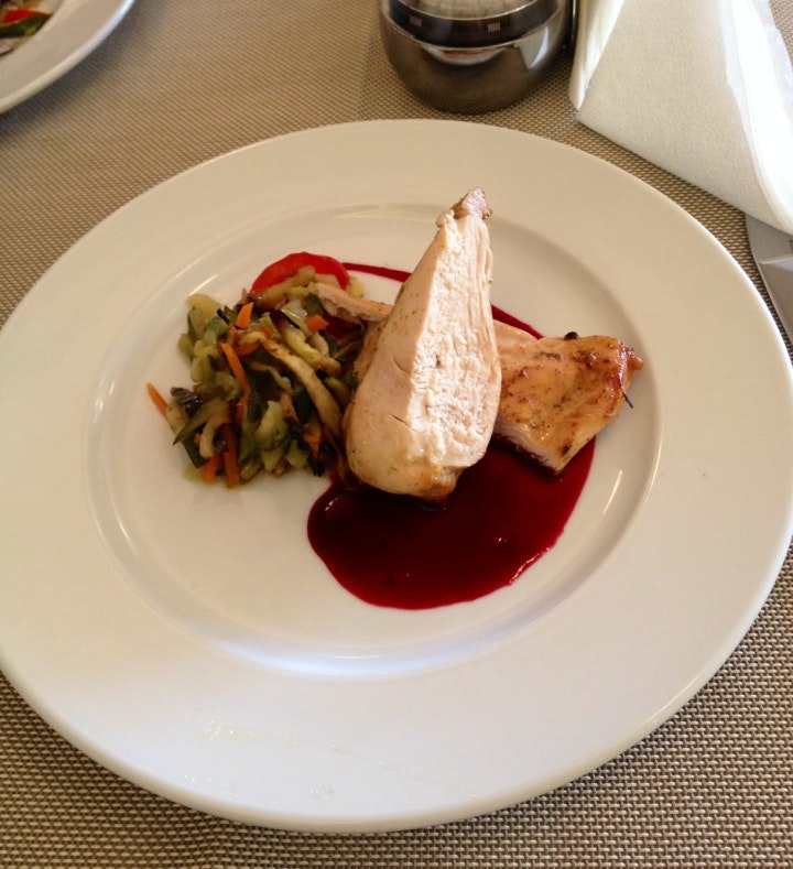Кухня на высоте!! Салат из курицы, листьев салата, вишни и кедровых орешек под йогуртом очень вкусно! А форель запеченая в беконе на дранике из цукини, просто нереально вкусно! Я обязательно вернусь!