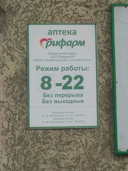 ⚕ Адрес, телефон, часы работы аптеки «Рифарм».